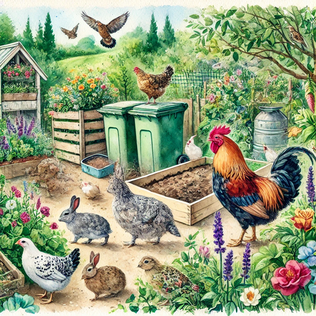 - Rabbits: Excellent for manure and, in some cases, meat production. Their waste can be used directly in the garden as it doesn’t need composting.